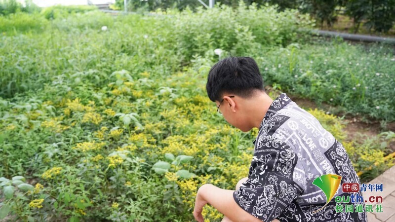 图为队员在敕勒川区域农业绿色发展创新中心观察植物生长情况。中国青年网通讯员 朱祥瑞 摄