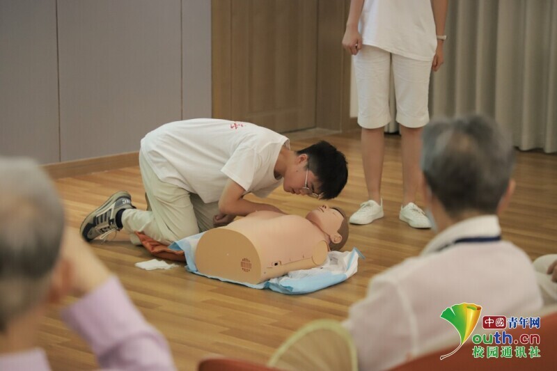图为志愿者为老人们演示心肺复苏术。 中国青年网通讯员 鲁钦正 摄