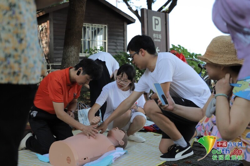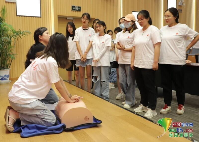 图为极速体育_必威体育$官网app网站附院特邀讲师为团队成员进行初级志愿者技能培训(图为心肺复苏术的培训)。 中国青年网通讯员 李程博 摄