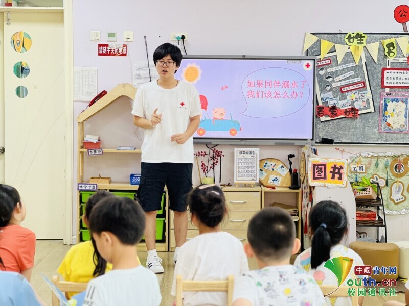 图为志愿者与小朋友互动,小朋友对防溺水知识侃侃而谈。 中国青年网通讯员 王婧怡 摄