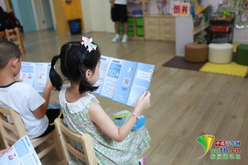 图为小朋友正在阅读宣传手册。 中国青年网通讯员 于瑛童 摄