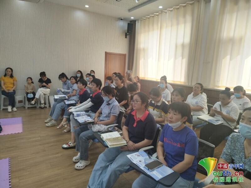 图为玉兰社区小朋友与家长认真倾听“防暑防溺小课堂”。 中国青年网通讯员 王婧怡 摄