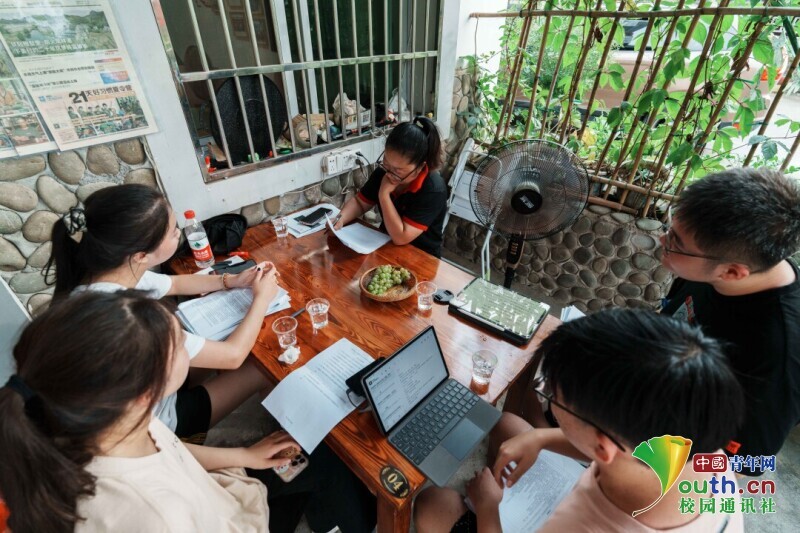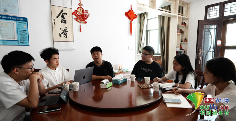 图为实践团与民宿老板交流,了解民宿经营状况。中国青年网通讯员 叶泽琛 摄