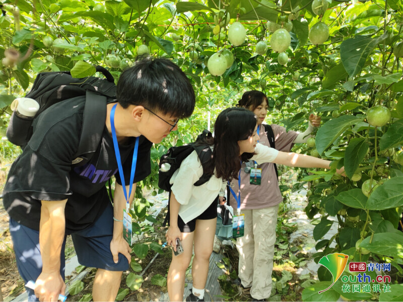 图为实践团成员走入从江县想钱山百香果种植基地观察种植情况。中国青年网通讯员 孙雨嫣 供图