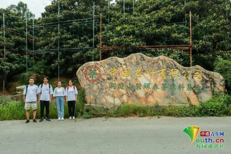?图为团队成员在洞庭山碧螺春茶原料基地合影留念。中国青年网通讯员 杨双竹 供图